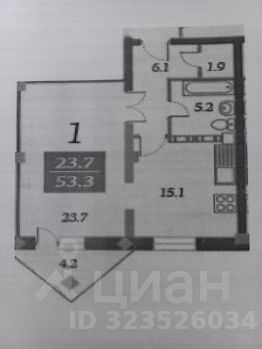 Просторная однокомнатная квартира классической планировки: кухня 15 кв.м., жилая комната 23,7 кв.м., совмещенный санузел, гардеробная комната. Высота потолков 2,8 метра. Отличный открытый вид из окна.