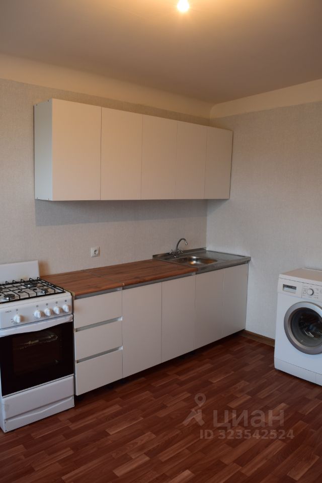 В квартире остаётся гостиная и шкаф в комнате, кухонный гарнитур, а также техника (плита, стиральная машина).