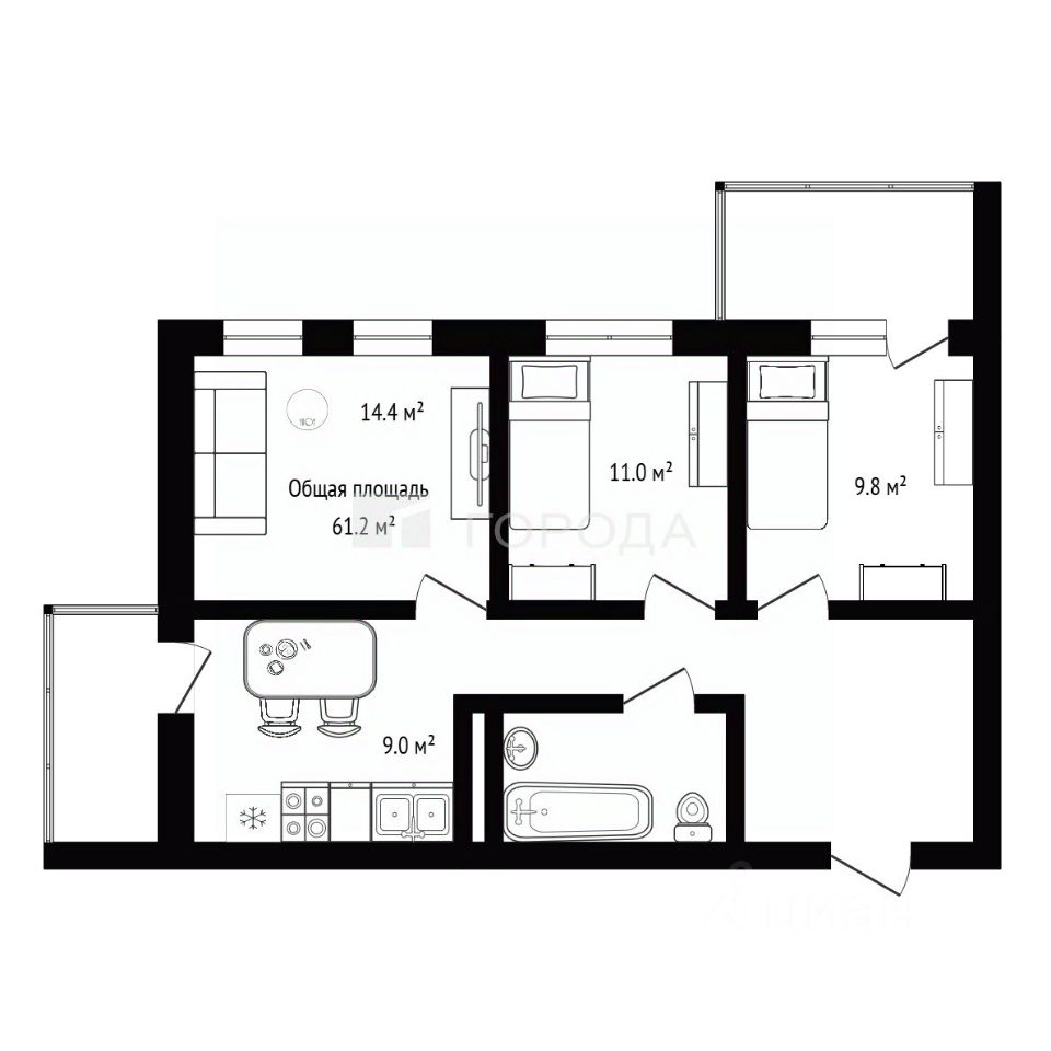 * 3 изолированные комнаты;