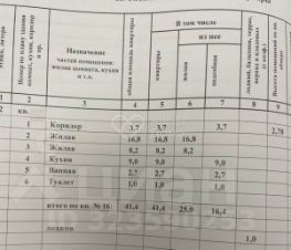 Планировка: общая 41.40 / жилая 25.00 / кухня 9.00