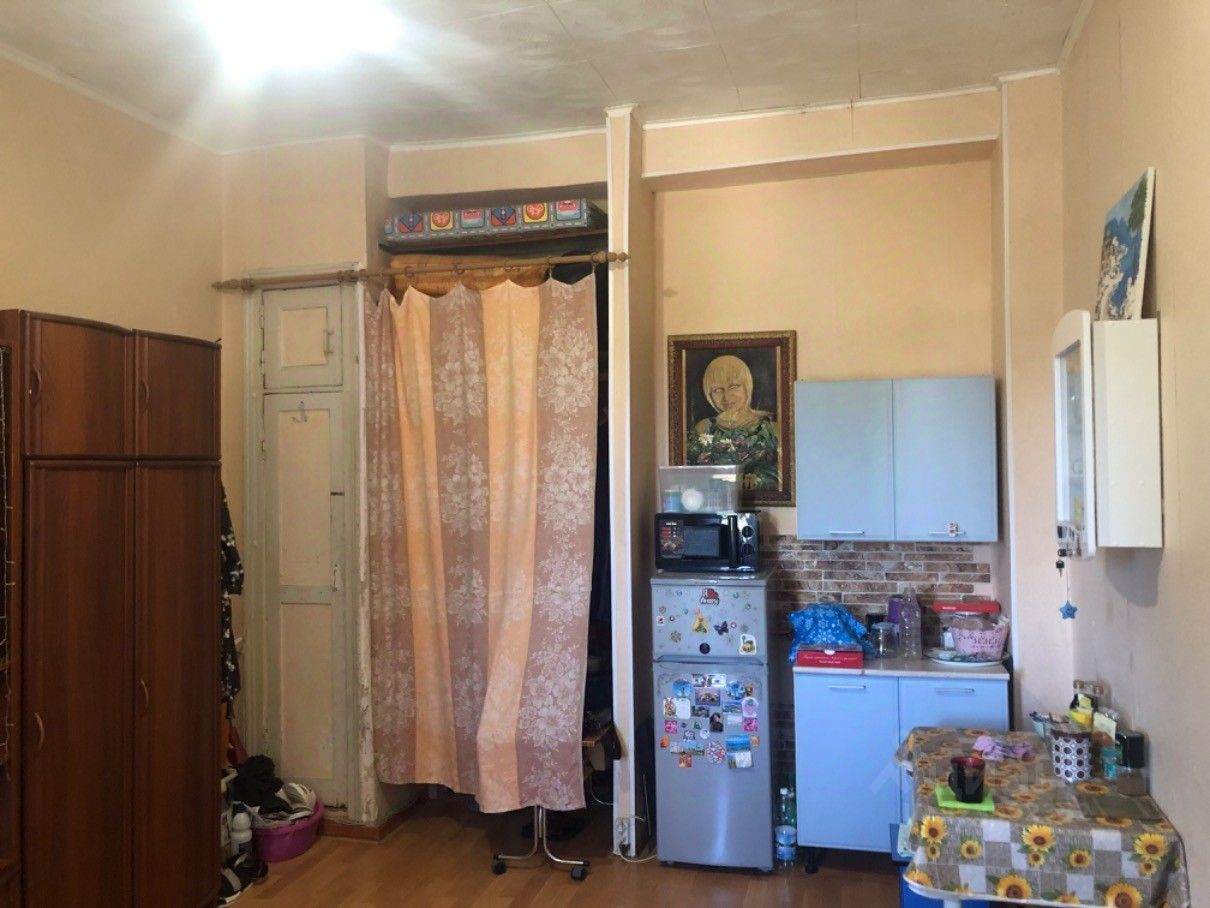 Ухоженная, чистая комната в тихом месте Дзержинского района. В коридоре есть индивидуальное место для сушки белья, на кухне персональный шкафчик для продуктов, закрывающийся на ключ и стол для готовки. На мойке также есть свое место для стирки и шкафчик для хранения хозяйственных принадлежностей. Туалет рассчитан на 3 комнаты, закрывается на ключ. Общежитие коридорного типа, малозаселенное, из шестнадцати комнат занято меньше половины, отдельное крыло.