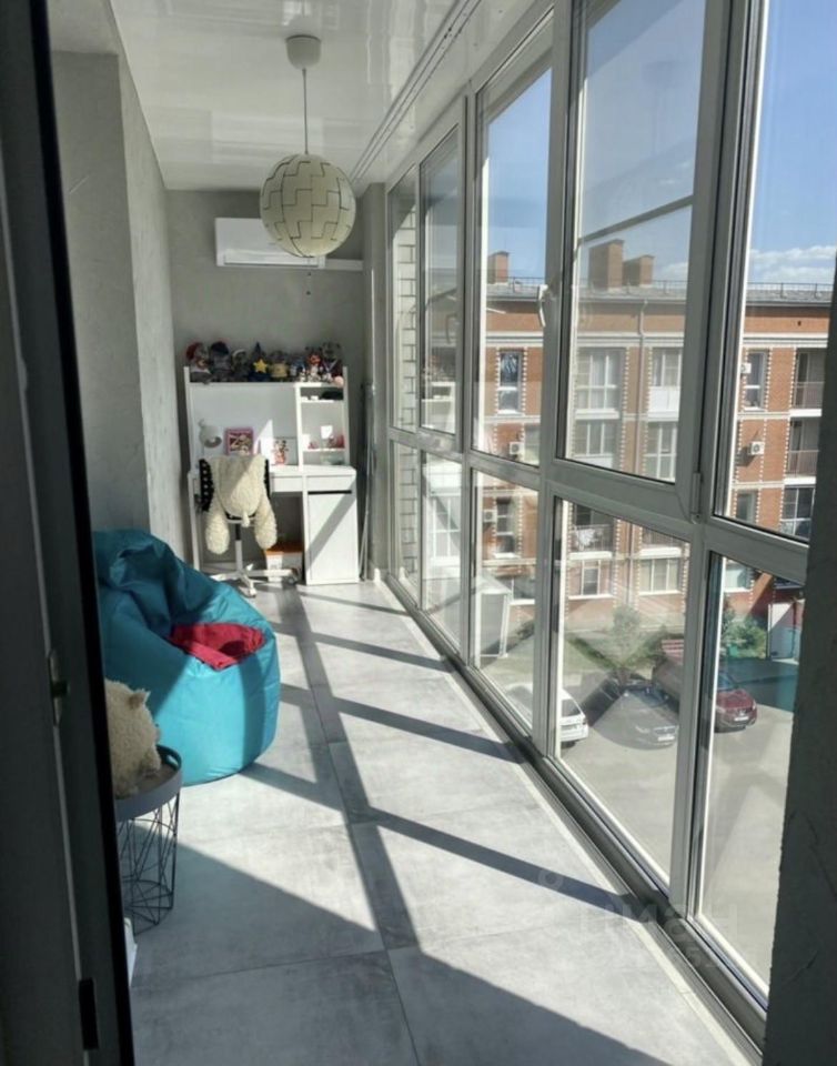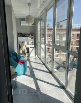 Лоджия застеклена, утеплена, установлен тёплый пол и кондиционер. На полу - керамогранит, стены - декоративная штукатурка, использовалась как полноценная детская комната. Выход на лоджию возможен как со стороны кухни, так и со стороны комнаты. Окна везде в пол.