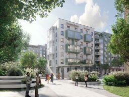 На фасадах разместятся открытые террасы и глубокие лоджии. Корзины для кондиционеров совмещены с лотками для высадки растений, что позволяет внести живую зелень в облик домов.