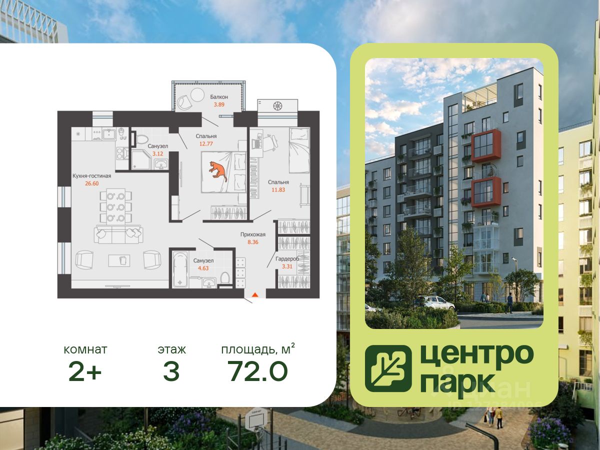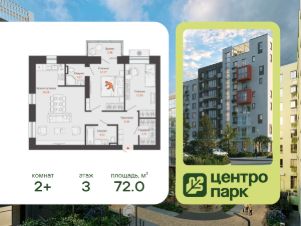 В продаже 2-комнатная квартира площадью 72.00 кв. м, расположенная в новом жилом комплексе комфорт-класса "Центропарк". Комплекс от федерального девелопера "Железно" находится в районе Тулака - географическом центре Волгограда.