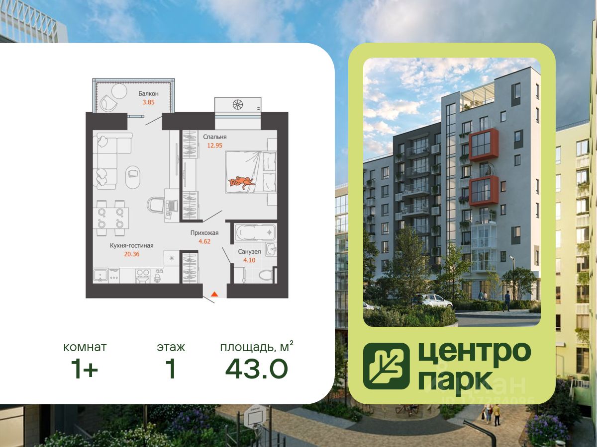 В продаже 1-комнатная квартира площадью 43.00 кв. м, расположенная в новом жилом комплексе комфорт-класса "Центропарк". Комплекс от федерального девелопера "Железно" находится в районе Тулака - географическом центре Волгограда.