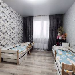Квартира в отличном состоянии. Удобная планировка: две изолированные спальни, просторная кухня-гостиная (фактически евро-трехкомнатная квартира). Натяжные потолки. Пластиковые окна. На полу ламинат, в зоне кухни и санузле- керамогранит, Раздельный санузел. Есть лоджия