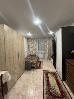 Комната в хорошем состоянии. натяжные потолки. Пластиковые окна. На полу линолеум. Раздельный санузел. Есть балкон. Соседи взрослые, мать и сын, не курящие и не пьющие.