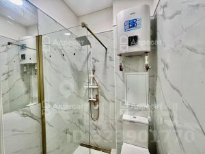 * Стильный дизайн: Совмещенный санузел с качественной сантехникой подчеркивает современность и продуманность каждого элемента интерьера.