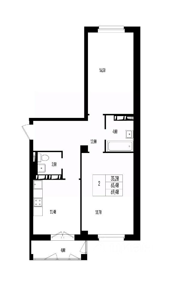 Общая площадь69,4 м²