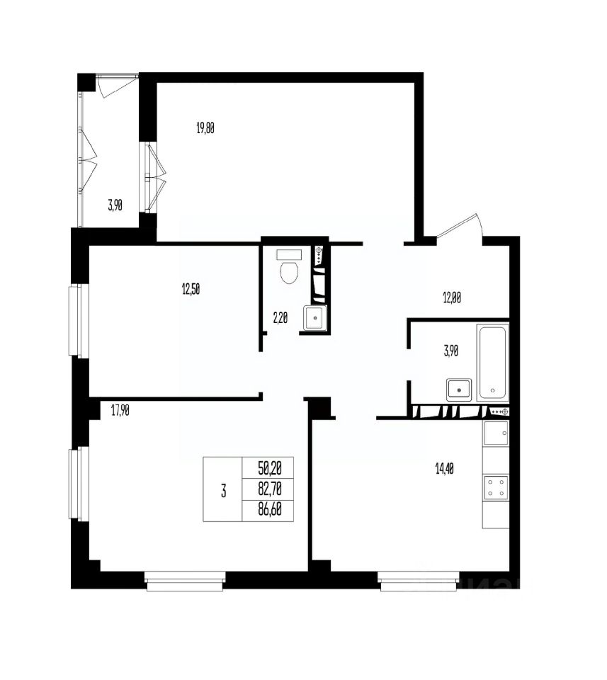 Общая площадь86,6 м²