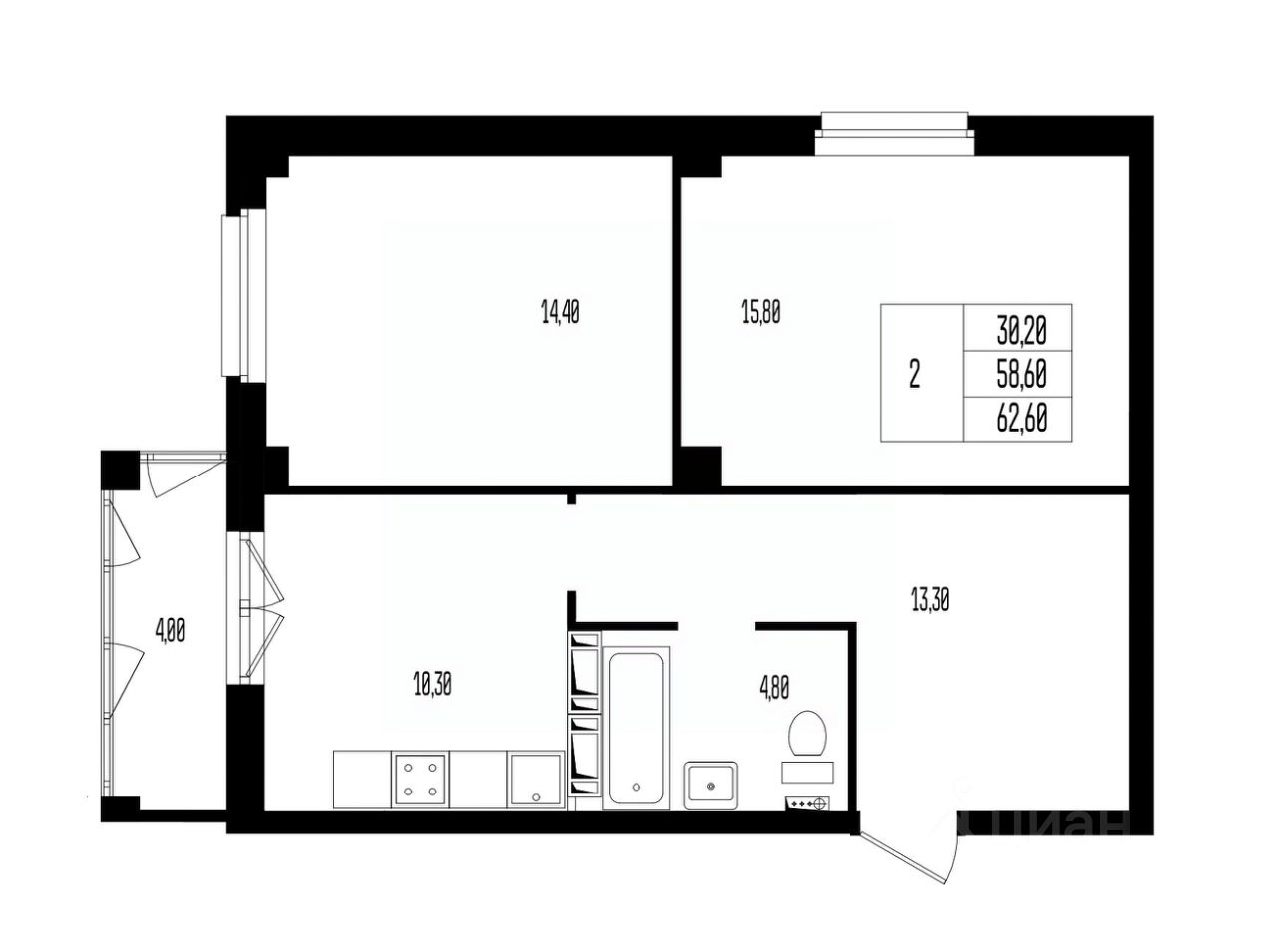 Общая площадь62,6 м²