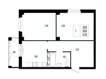Квартира свободной планировки, 62,6 м²