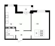 Квартира свободной планировки, 56,3 м²