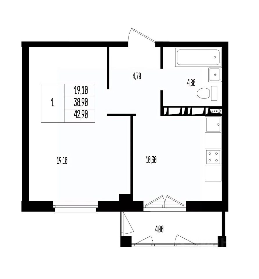 Общая площадь42,9 м²