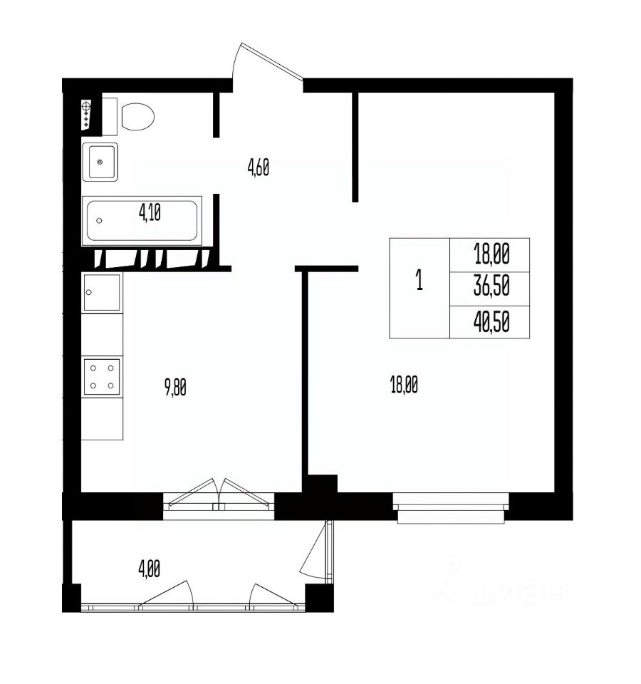Общая площадь40,5 м²