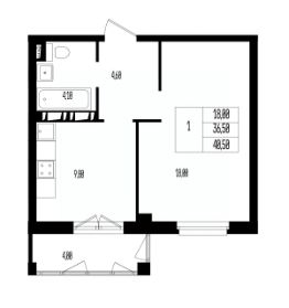 Квартира свободной планировки, 40,5 м²