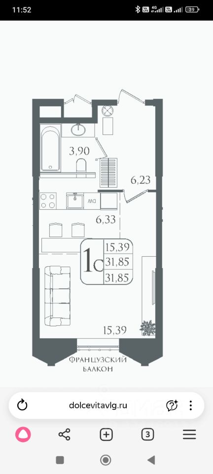 Продается просторная однокомнатная квартира в элитном жилом комплексе "DOLCE VITA" в монолитно-кирпичном доме по цене застройщика. Сдача дома в декабре 2025г. Возможна рассрочка платежа на 6 месяцев. Проект ЖК предусматривает: современную школу на 1000 мест, свою котельную, закрытую территорию, фонтан, магазины, развивающие территории, а также площадки для выгула животных и мойку для лап.