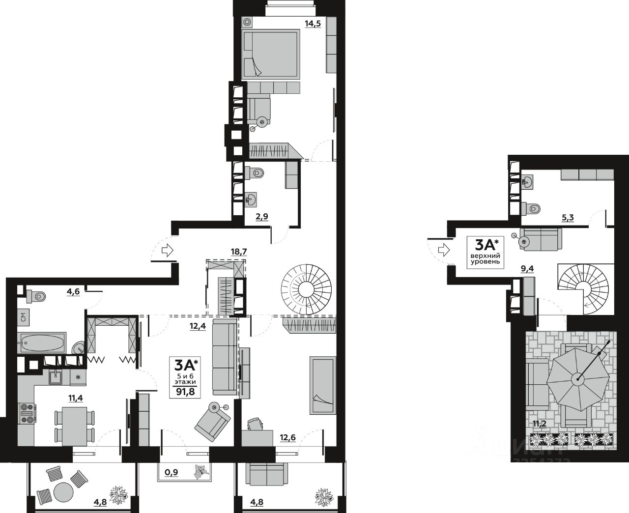 11,4 м²