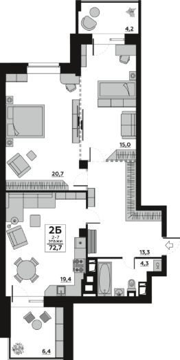 Общая площадь72,74 м²