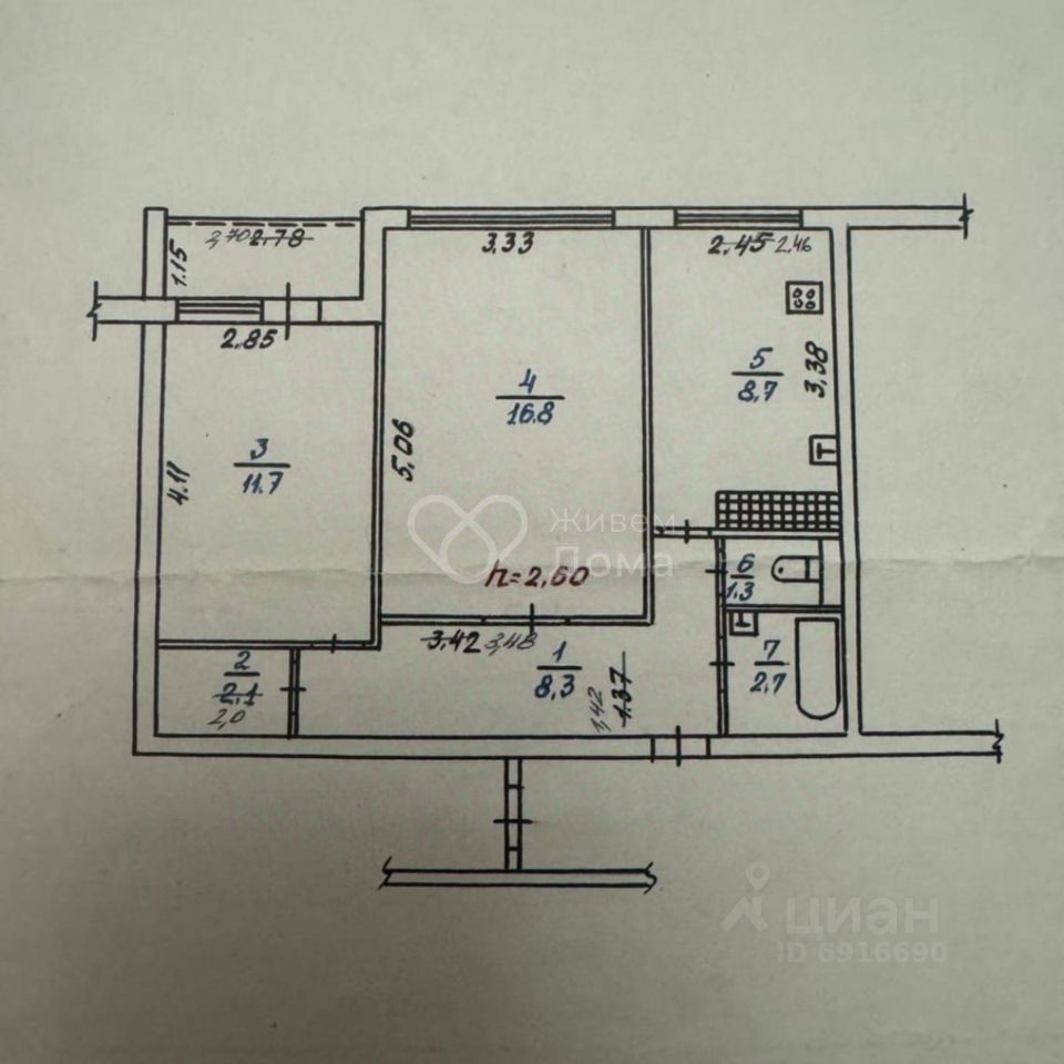 Пластиковые окна. На полу линолеум. Раздельный санузел. Есть застекленная лоджия
