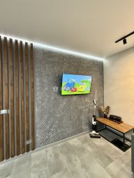 Квартира расположена на первом этаже десятиэтажного дома, построенного в 2021 году. Общая площадь — 78 квадратных метров, из которых 50 метров приходится на жилую площадь. Комнаты — 16+14+10+10 и кухня — 20 квадратных метров. Высота потолков — 2,9 метра.