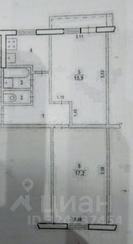 Брежневская планировка: общая 47.40 / жилая 33.10 / кухня 6.00
