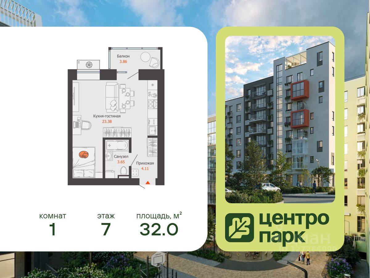 В продаже студия площадью 32.00 кв. м, расположенная в новом жилом комплексе комфорт-класса "Центропарк". Комплекс от федерального девелопера "Железно" находится в районе Тулака - географическом центре Волгограда.