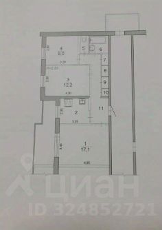 Раздельные комнаты: 17.10 + 12.20 + 9 метров