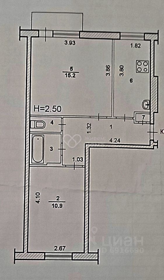 6,7 м²