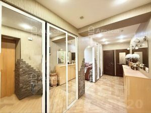 В прихожей просторный встроенный шкаф ,отличное решение для хранения вещей .