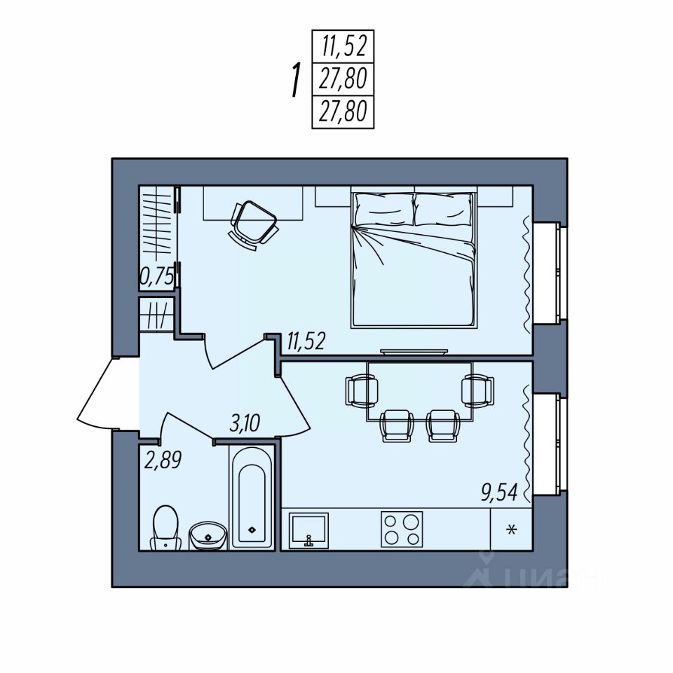Общая площадь27,8 м²