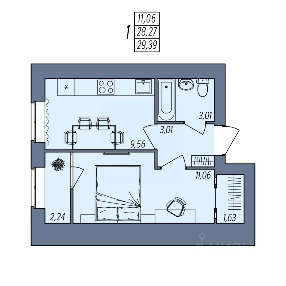 Общая площадь29,39 м²