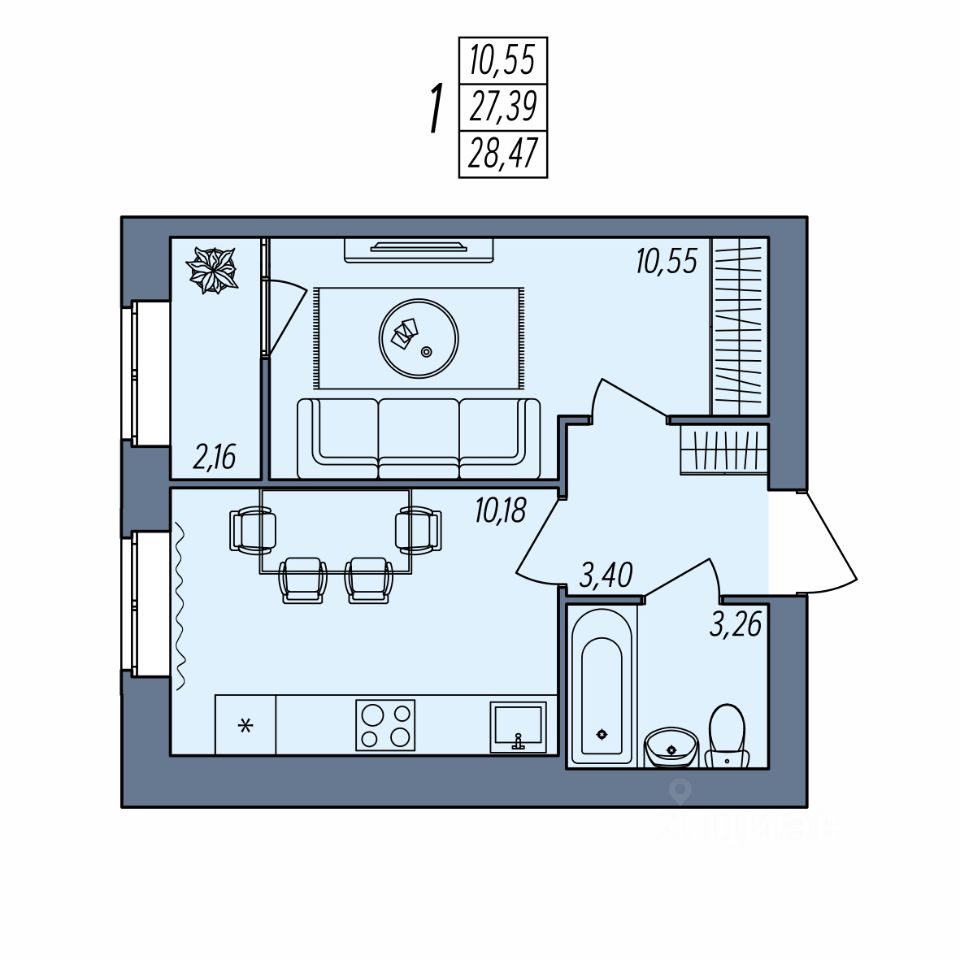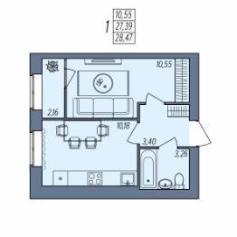 Общая площадь28,47 м²