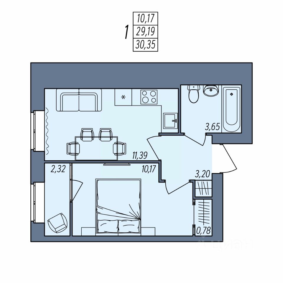 Общая площадь30,35 м²