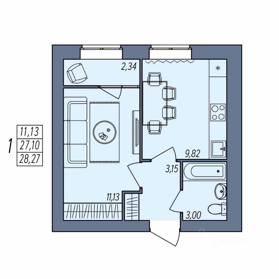 Общая площадь28,27 м²