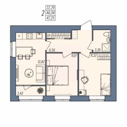 Общая площадь47,25 м²