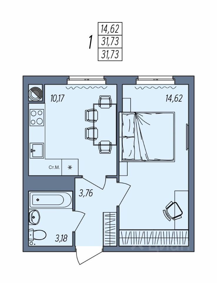 Общая площадь31,73 м²