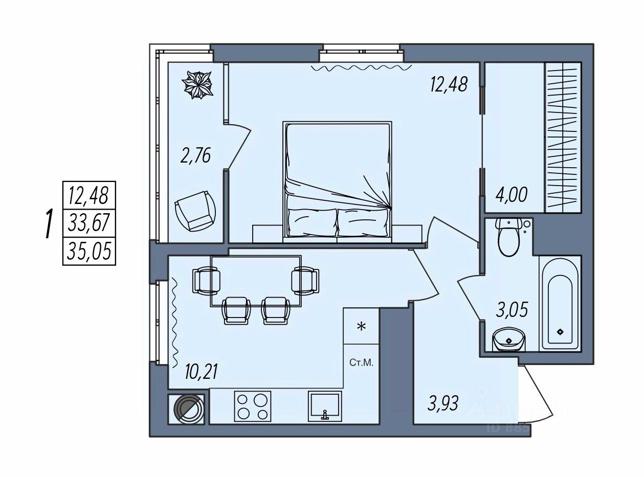 Общая площадь35,05 м²