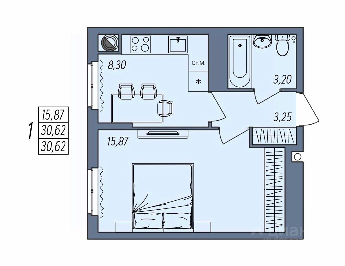 Общая площадь30,62 м²