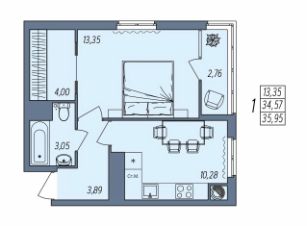 Общая площадь35,95 м²