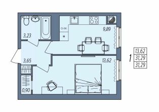 Общая площадь31,29 м²