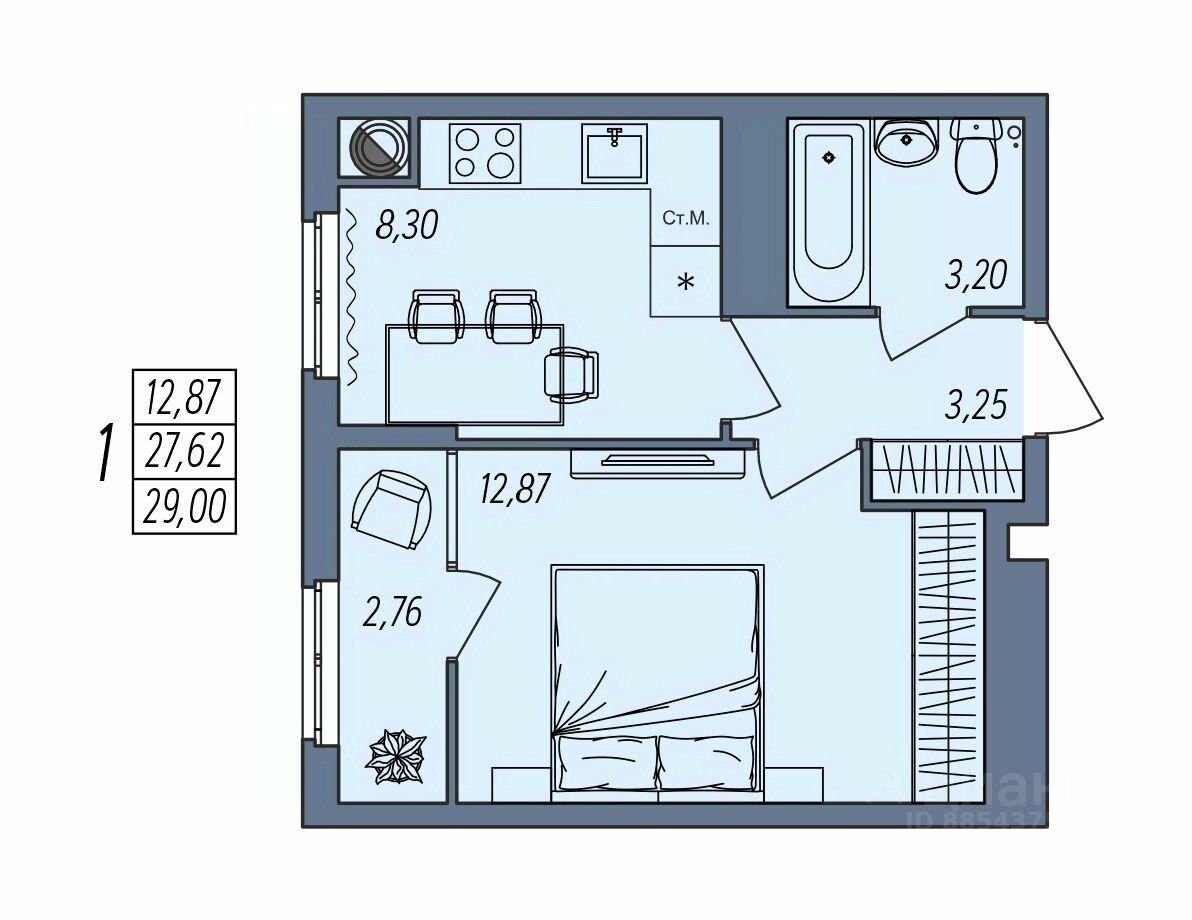Общая площадь29 м²