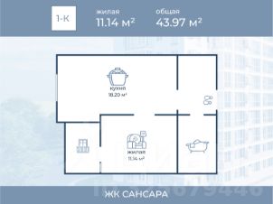 жилая площадь — 43.97 м²