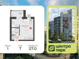 В продаже студия площадью 27.00 кв. м, расположенная в новом жилом комплексе комфорт-класса "Центропарк". Комплекс от федерального девелопера "Железно" находится в районе Тулака - географическом центре Волгограда.