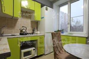 Интерьер квартиры выполнен с использованием качественных материалов: на полу уложен линолеум, стены выравненные, оклеены современные обои, новые радиаторы, межкомнатные и входная двери. Заменены электропроводка.
