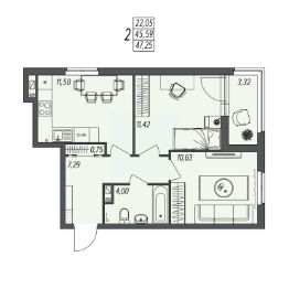 Общая площадь47,25 м²