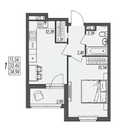 Общая площадь34,94 м²