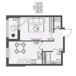 Общая площадь38,27 м²