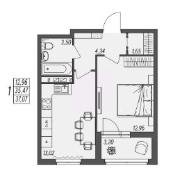Общая площадь37,07 м²