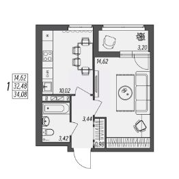 Общая площадь34,08 м²